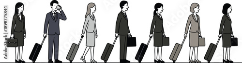 Женщина-путешественница с багажной сумкой, вид сзади, векторный значок, выделенный на белом фоне. Концепция вирусной пандемии.