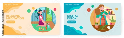 Женщина использует натуральную органическую косметику. После душа процедура ухода за телом и волосами. Иллюстрация концепции красоты. Векторный шаблон дизайна веб-сайта. Иллюстрация сайта целевой страницы.