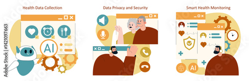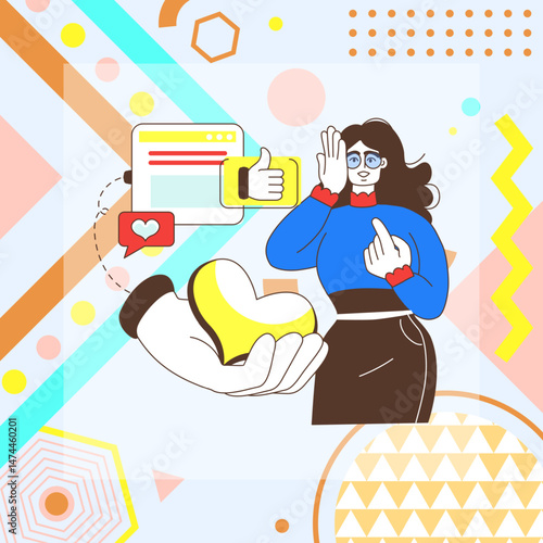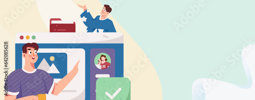 Женщина использует швейную машинку для ремонта платья. Женщина смотреть онлайн учебник как шить одежду. Иллюстрация концепции пожертвования одежды. Иллюстрация подержанного платья. Векторный шаблон дизайна веб-сайта.