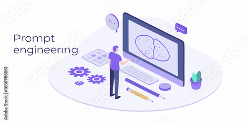 Женщина, переводящая слова с английского на французский с помощью мобильного приложения для перевода чат-бота, плоская векторная изометрическая иллюстрация. Переводчик чат-бота с искусственным интеллектом.