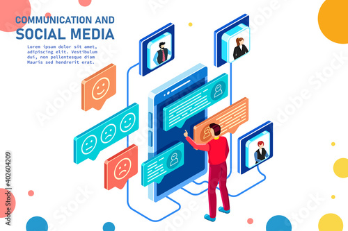 Женщина, переводящая слова с английского на французский с помощью мобильного приложения для перевода чат-бота, плоская векторная изометрическая иллюстрация. Искусственный интеллект-чат-бот-переводчик.