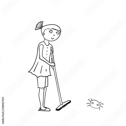 Женщина пылесосит пол в доме. Векторная иллюстрация концепции услуг по уборке в стиле ретро-комического поп-арта.