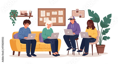Женщина посещает психолога в своем кабинете. Иллюстрация концепции психического лечения и психотерапевтического консультирования. Векторный шаблон дизайна веб-сайта. Женщина сидит на диване и разговаривает с психотерапевтом.