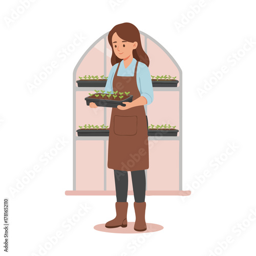 Женщина-официантка разносит фаст-фуд на подносе векторный значок, изолированный на белом фоне.
