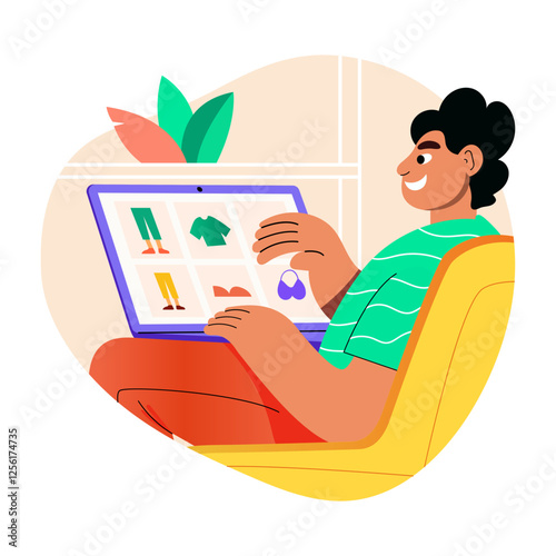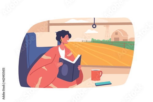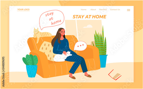 Женщина смотрит телевизор дома и ест здоровые закуски. Миска с фруктами. Иллюстрация концепции здорового питания. Векторный шаблон дизайна веб-сайта. Выходные и свободное время дома.