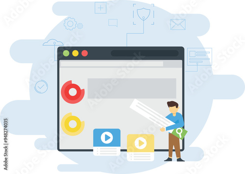 Отзыв клиента и обратная связь на экране мобильного телефона, плоская векторная иллюстрация. Женщина смотрит видео и показывает неприязненный большой палец вниз. Плохая обратная связь, негативные комментарии.