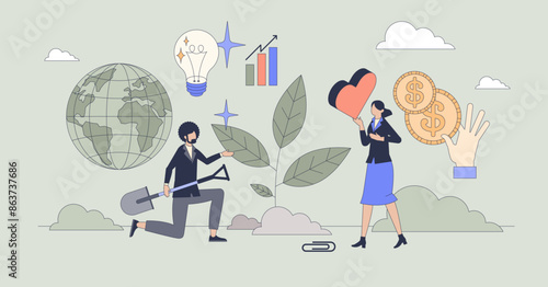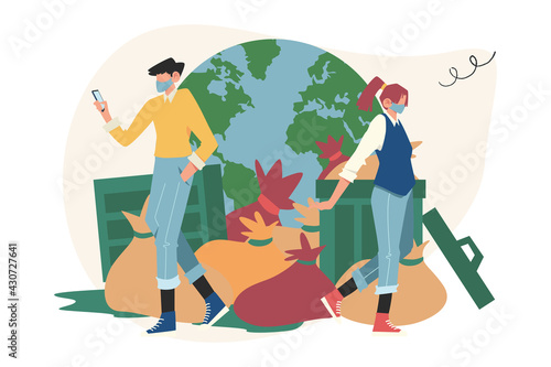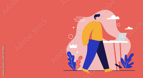 Женщина поливает цветы и дерево в саду. Человек пытается нарисовать натюрморт. Иллюстрация концепции хобби. Векторный шаблон дизайна веб-сайта. Иллюстрация сайта целевой страницы.