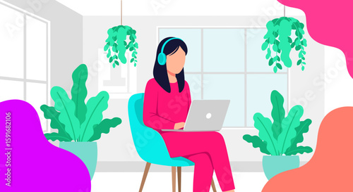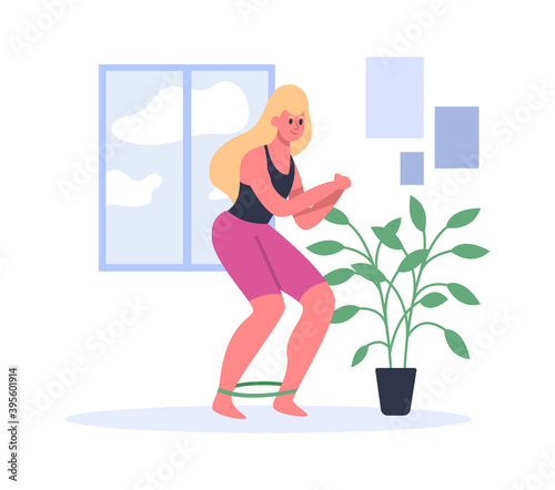 Молодая женщина поливает цветы на балконе. Векторная иллюстрация в плоском стиле. Элемент дизайна концепции хобби по цветоводству.