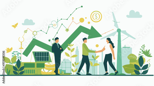 Женщина поливает денежное дерево векторной плоской иллюстрацией. Рост денежных инвестиций. Концепция бизнеса и финансов. Дерево в горшке с долларовыми листьями.