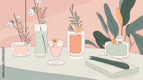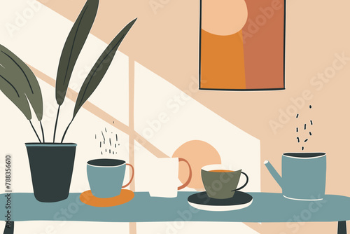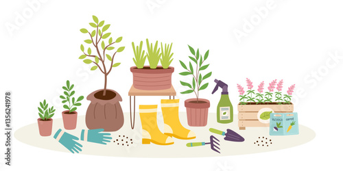 Женщина поливает растения в домашнем саду. Иллюстрация концепции домашних растений. Векторный шаблон дизайна веб-сайта. Цветы в горшках, комнатные растения, хобби флориста.