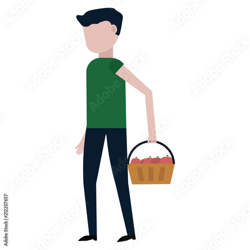 Женщина в медицинской маске для лица, держащая в руках продуктовую корзину, векторный значок, изолированный на белом фоне
