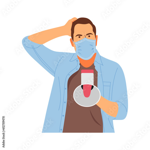 Женщина в медицинской маске, использующая дезинфицирующее средство для рук, векторный значок, изолированный на белом фоне