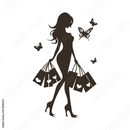 Женщина с сумками ходит по магазинам. Векторная иллюстрация в стиле поп-арта комиксов. Специальные предложения по продаже рекламных плакатов.