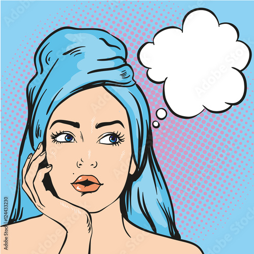Женщина с косметической маской красоты на лице. Векторная иллюстрация в стиле комиксов поп-арта.