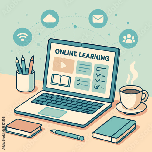 Женщина с ноутбуком сидит на подоконнике и работает из дома. Ноутбук на столе с графическим программным обеспечением. Иллюстрация концепции цифрового дизайна. Векторный шаблон дизайна веб-сайта.