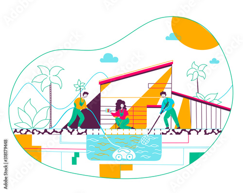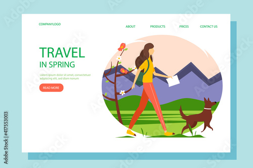 Женщина с лыжами сидит на кресельном подъемнике. Зимний отдых на горном горнолыжном курорте векторная иллюстрация концепции. Лыжный спорт. Снежная гора зимний пейзаж. Шаблон дизайна веб-сайта.