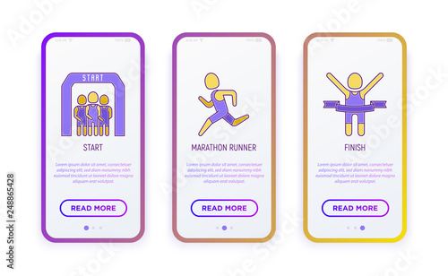 Женская акробатическая гимнастика, соревнования по прыжкам в высоту, тренировки. Трофеи победителей. Экраны мобильных приложений. Векторный шаблон баннера для разработки веб-сайтов и мобильных устройств. Иллюстрация дизайна веб-сайта и пользовательского интерфейса