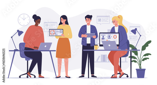 Женщины делают покупки и покупают одежду в магазине одежды или бутике одежды. Векторная иллюстрация концепции модного платья. Покупательницы примеряют платье в гримерке. Интерьер модного магазина.