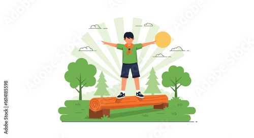 Векторная иллюстрация молодого человека-лесоруба, рубящего дрова. Элемент дизайна в плоском стиле дровосека.