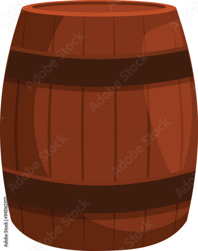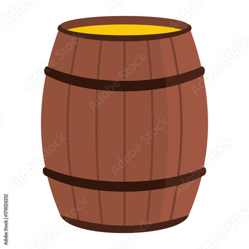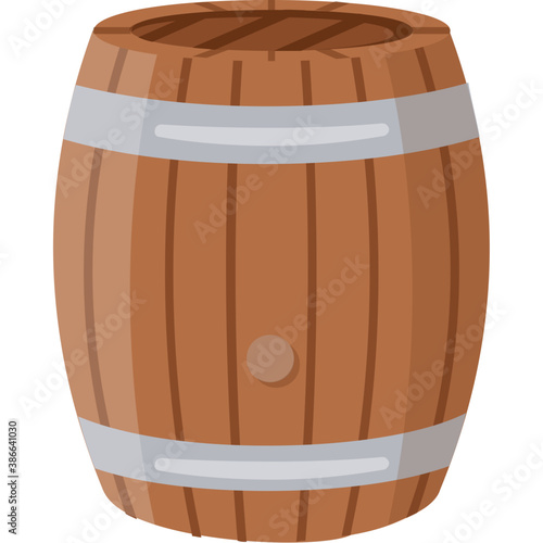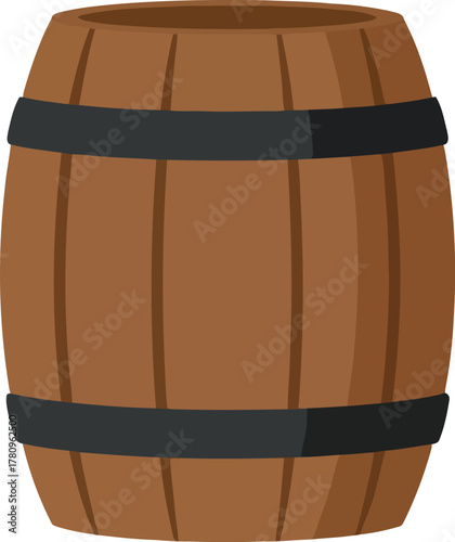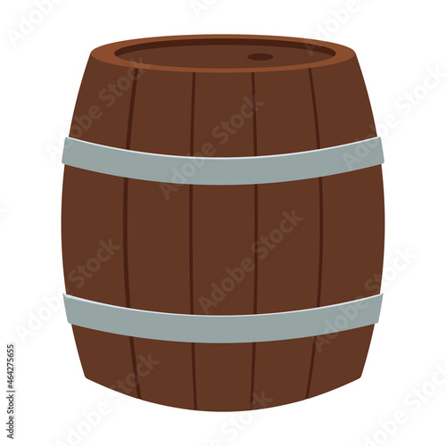 Вектор деревянной бочки. Бочка для пива или бочонок для вина, рома или виски, дубовый винтажный резервуар для хранения, плоский, изолированный на белом фоне. Иллюстрация деревянного контейнера для алкогольных напитков или пороха