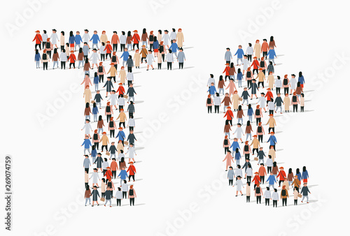 Слово "Да" состоит из множества людей, образует большую толпу. Группа людей остается в форме знака "Да". Социальная активность, коллективные действия и вовлечение общественности. Векторная иллюстрация в изометрическом стиле.