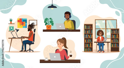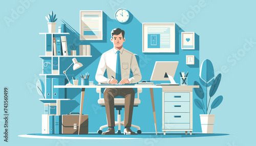 Перегруженный работой усталый офисный мужчина, сидящий за столом перед компьютером, положив голову на руку, векторная плоская иллюстрация. Выгорание на работе, умственная усталость, эмоциональное истощение, стресс, связанный с работой.