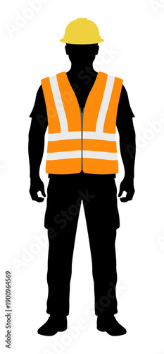 Профессиональная рабочая одежда и комплект униформы, векторная изолированная иллюстрация. Защитная одежда и средства безопасности. Реалистичный желтый шлем, очки, футболка, обувь, жилет и брюки со светоотражающими полосками