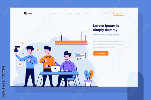Шаблон векторного веб-сайта рабочей области, дизайн веб-страницы и целевой страницы для разработки веб-сайтов и мобильных сайтов. Концепция рабочей станции разработчиков программного обеспечения с персонажами, работающими и отдыхающими.
