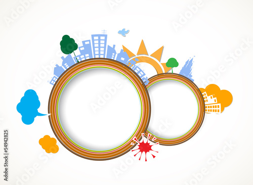 Мировое путешествие на велосипеде, векторная иллюстрация в стиле бумажного искусства. Счастливая семья отец, мать и ребенок путешествуют по миру на велосипеде. Семейный отдых, шаблон баннера плаката с приключениями на велосипеде.