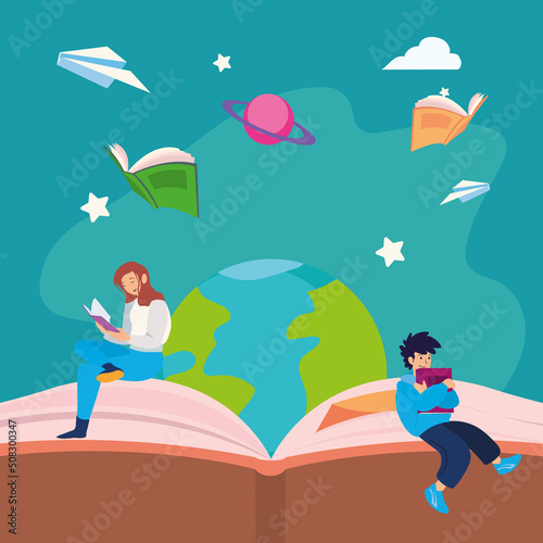 Глобус планеты Земля с многорасовым рукопожатием, крошечными персонажами с сердцем, ростком, плоской векторной иллюстрацией. Международный день мира, остановить расизм, мир во всем мире, глобальное партнерство, забота о планете.