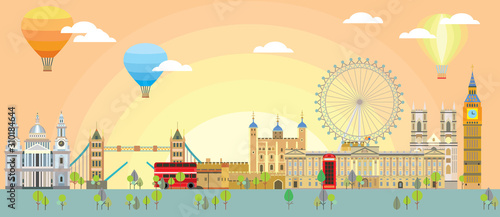 Фоновый вектор путешествия по миру. Туристическая иллюстрация. Иллюстрация тура по Европе. Сцена праздничного приключения. Городская архитектура с известными достопримечательностями, ориентирами и ландшафтом небоскребов