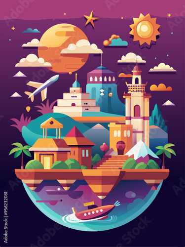 Векторная иллюстрация концепции доставки по всему миру. Глобус с маркером на карте и беспилотник с посылкой. Элемент дизайна в плоском стиле для шаблона веб-сайта, плаката, баннера и т.д.