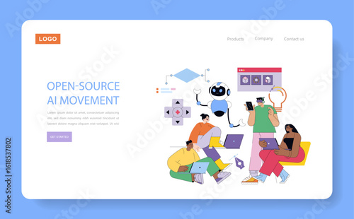 Дизайн целевой страницы блогера йоги, набор шаблонов баннеров веб-сайта, плоская векторная иллюстрация. Женщина - тренер влоггер записывает видео класса йоги с помощью камеры смартфона на штативе. Блог или прямая трансляция.