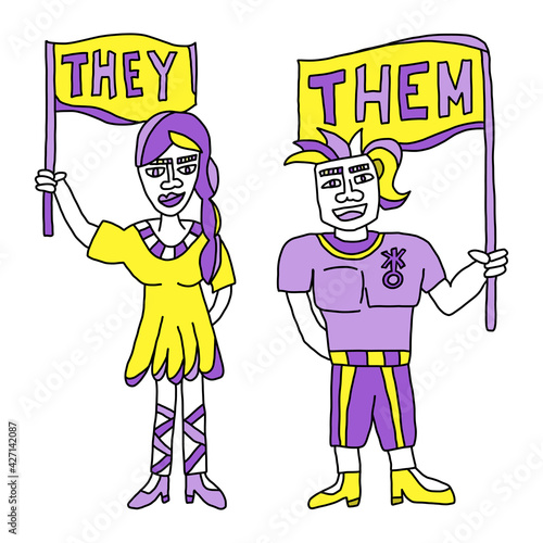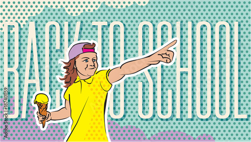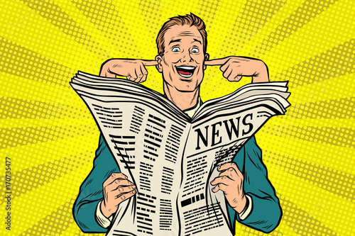 Вы выигрываете векторную иллюстрацию. Молодой человек держит плакат с текстом. Дизайн в стиле комиксов в стиле ретро-поп-арта.