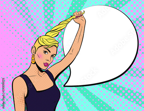 Молодая красивая деловая женщина, занимающаяся боксом и боксом. Концептуальный векторный плакат в стиле ретро-комического поп-арта.