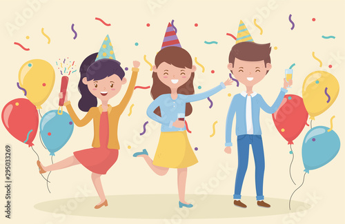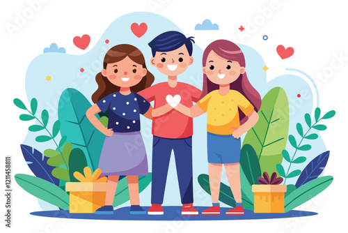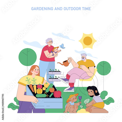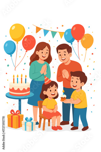 Празднование дня новорожденного и матери. Молодая семья празднует рождение ребенка векторной плоской сценой. Иллюстрация ухода родителей и бабушек/дедушек за младенцем. Отпуск по беременности и родам и концепция отцовства