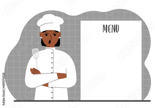 Векторная иконка молодой женщины-шеф-повара, изолированная на белом фоне