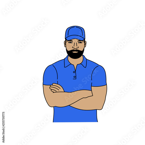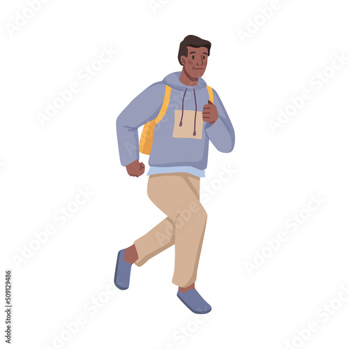 Молодая студентка жестикулирует несогласием и векторным значком знака остановки, изолированным на белом фоне