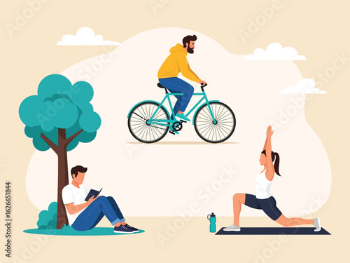 Молодая девушка сидит на капоте автомобиля. Женщина кормит птиц в парке. Иллюстрация концепции молодежной подростковой культуры. Векторный шаблон дизайна веб-сайта.