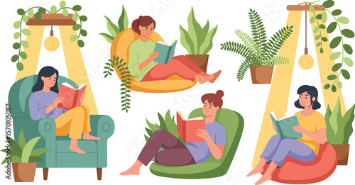 Молодая девушка делает селфи перед зеркалом. Набор векторных плакатов для фотоаппарата мгновенной съемки. Фотографии с романтического свидания пары. Рука держит фотографию с сельским пейзажем на заднем плане.