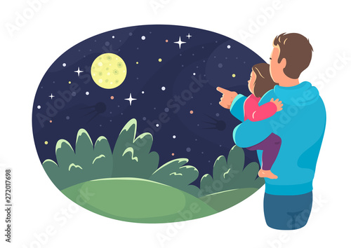 Молодой человек в гарнитуре виртуальной реальности, летящий в космическом пространстве, плоская векторная иллюстрация. Космическая VR-игра, симулятор, образование. Технологии виртуальной реальности и развлечения.