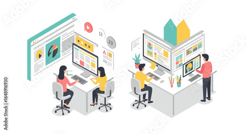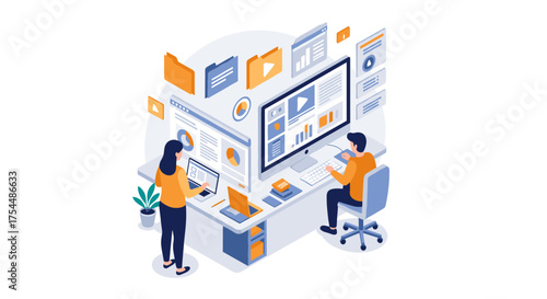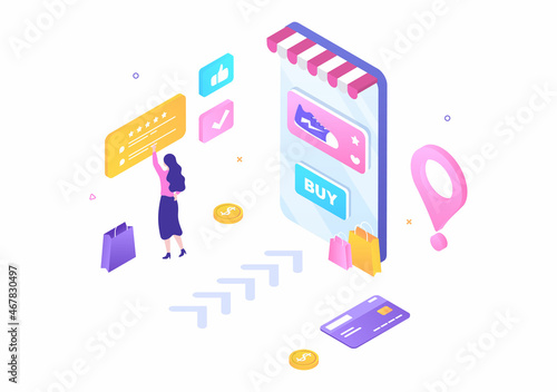 Молодой человек, делающий покупки онлайн, плоская векторная изометрическая иллюстрация. Мобильные покупки, электронная коммерция, интернет-магазин.