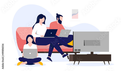Молодой человек читает книгу, лежа на диване, плоская векторная иллюстрация. Мультяшный персонаж мужского пола учится, отдыхает дома, наслаждается чтением журнала в свободное время. Хобби и досуг, образование.