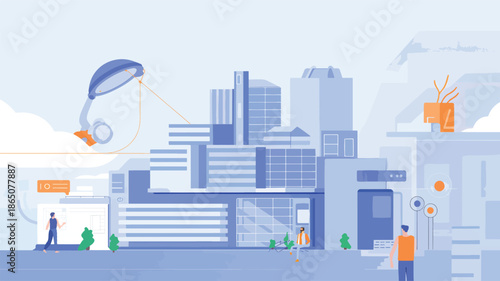 Молодой человек едет на электрическом самокате по дороге, векторная иллюстрация в стиле бумажного искусства. Современное транспортное средство, экологичный городской транспорт. Езда на уличном скутере.