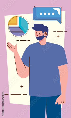 Молодой мускулистый культурист, держащий в руках гири-гантели, стоящий рядом с канистрой с протеиновой бутылкой, изолированной на белом фоне. Векторная иллюстрация спортсмена, рекламирующего добавку к спортивному питанию
