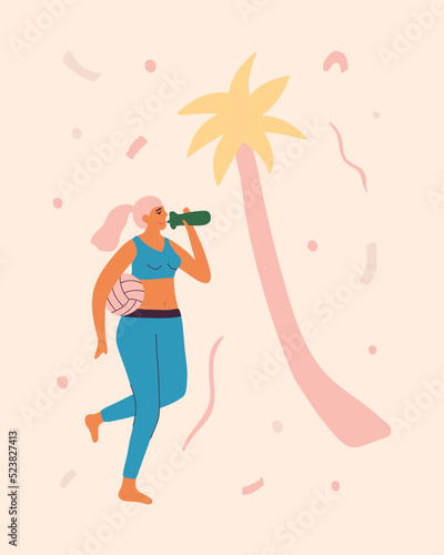 Молодая симпатичная девушка слушает музыку, наслаждаясь красотой векторной иллюстрации природы, изолированной на белом фоне. Вдохновение, концепция мечты