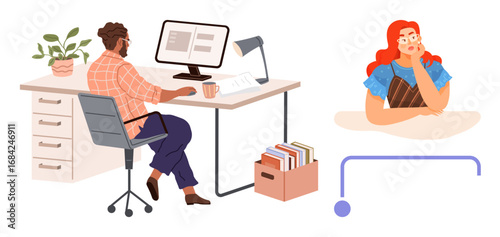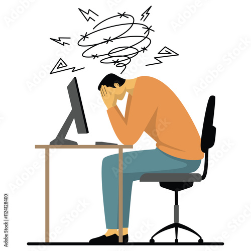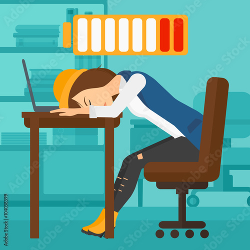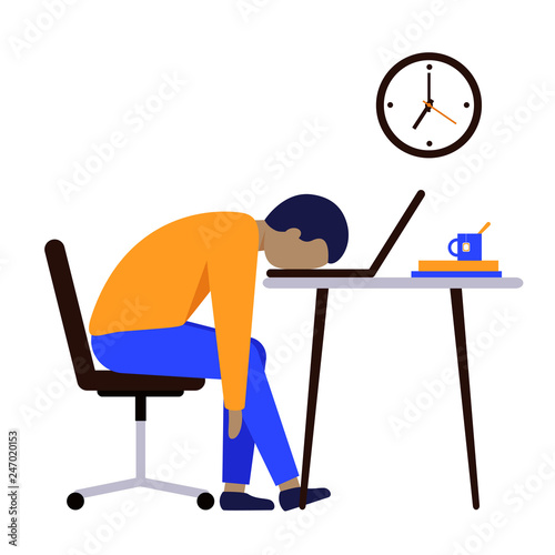 Молодая уставшая женщина-офисный работник, персонаж, просящий о помощи, векторный значок, изолированный на белом фоне.