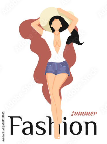 Молодая женщина, одетая в купальник, векторная иконка, изолированная на белом фоне.