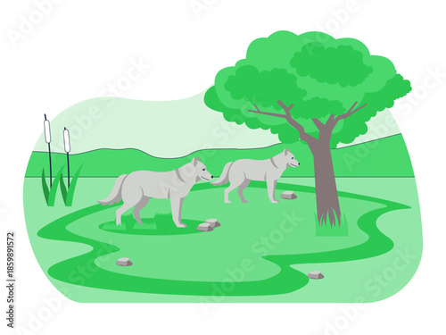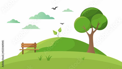 Молодая женщина, садовник поливает дерево из шланга, плоская векторная иллюстрация. Садоводство, сельское хозяйство, уход за садом и техническое обслуживание.