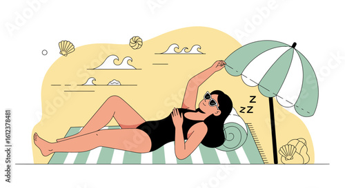 Молодая женщина в спортивном костюме бегает по парку. Иллюстрация концепции здорового образа жизни. Векторный шаблон дизайна веб-сайта. Женщина с наушниками упражняется и бегает в сельской местности на открытом воздухе.